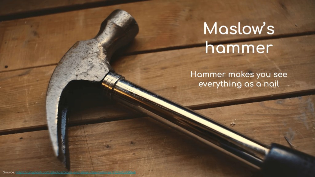Maslow’s hammer เป็น mental model ที่บอกว่า เครื่องมือสามารถจำกัดมุมมองของเราได้