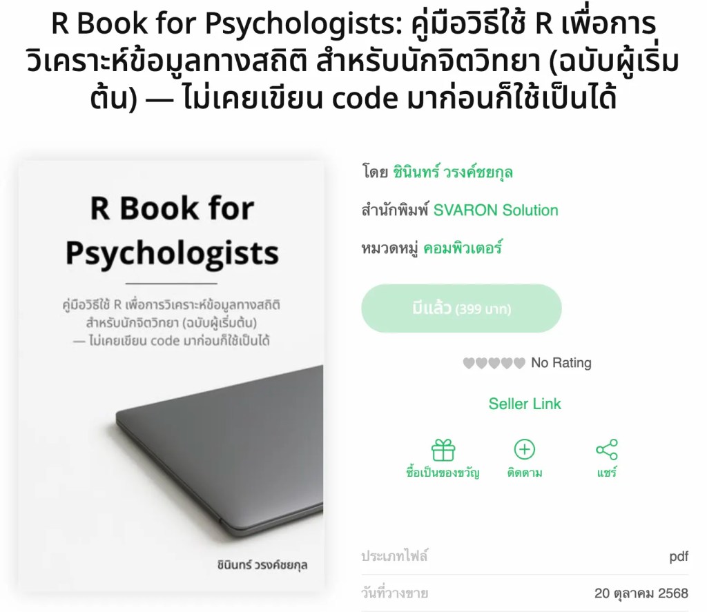 💪 ผมขอแนะนำ R Book for Psychologists หนังสือสอนใช้ภาษา R เพื่อการวิเคราะห์ข้อมูลทางจิตวิทยา ที่เขียนมาเพื่อนักจิตวิทยาที่ไม่เคยมีประสบการณ์เขียน code มาก่อน